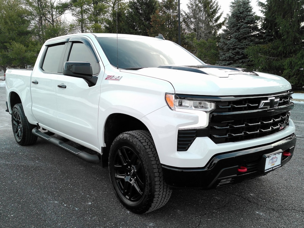 Summit White 2022 Chevrolet Silverado 1500 LT Trail Boss 4WD 10-Speed Automatic EcoTec3 5.3L V8 2 Keys / Fobs Included, 4WD, Clean CARFAX, 10-Speed Automatic, 4WD, Black Cloth, 10-Way Power Driver Seat w/Lumbar, 12.3 Multicolor Reconfigurable Digital Display, 120-Volt Bed Mounted Power Outlet, 120-Volt Instrument Panel Power Outlet, 6-Speaker Audio System, All-Weather Floor Liner (LPO) (AAK), Auto-Locking Rear Differential, Black Name Plates (LPO), Bluetooth® For Phone, Chevrolet Connected Access Capable, Chevytec Spray-On Black Bedliner, Color-Keyed Carpeting Floor Covering, Compass, Convenience Package, Convenience Package II, Dark Essentials Package (LPO), Deep-Tinted Glass, Dual Rear USB Ports (Charge Only), Dual-Zone Automatic Climate Control, Electric Rear-Window Defogger, Electrical Steering Column Lock, Electronic Cruise Control, EZ Lift Power Lock & Release Tailgate, Front LED Fog Lamps, HD Rear Vision Camera, Heated Driver & Front Outboard Passenger Seats, Heated Power-Adjustable Outside Mirrors, Heated Steering Wheel, High Gloss Black Mirror Caps, Hitch Guidance, Hitch Guidance w/Hitch View, Inside Rear-View Mirror w/Tilt, Integrated Trailer Brake Controller, Keyless Open & Start, Leather Wrapped Steering Wheel, LED Cargo Area Lighting, Manual Tilt/Telescoping Steering Column, OnStar & Chevrolet Connected Services Capable, Performance Red Recovery Hooks, Power Front Windows w/Driver Express Up/Down, Power Front Windows w/Passenger Express Down, Power Rear Windows w/Express Down, Power Sliding Rear Window w/Rear Defogger, Preferred Equipment Group 2LT, Premium Bose 7-Speaker Sound System, Protection Package, Rear 60/40 Folding Bench Seat (Folds Up), Rear Wheelhouse Liners, Remote Vehicle Starter System, SiriusXM w/360L, Standard Tailgate, Steering Wheel Audio Controls, Theft Deterrent System (Unauthorized Entry), Trailering App, Trailering Package, Universal Home Remote, Wi-Fi Hot Spot Capable, Wireless Phone Projection.