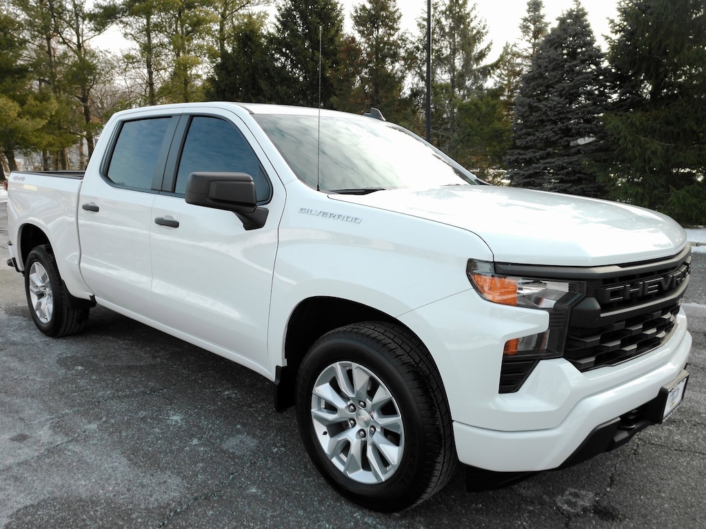 Summit White 2022 Chevrolet Silverado 1500 Custom 4WD 8-Speed Automatic 2.7L Turbo * * BUY FROM A TRUSTED FAMILY OWNED DEALERSHIP, SATISFYING CUSTOMERS SINCE 1957! * *, 4WD, Back Up Camera, Bluetooth, Hands Free, CARFAX One Owner, Clean CARFAX, Clean Vehicle History Report, 8-Speed Automatic, 4WD, Black Cloth, 10-Way Power Driver Seat w/Lumbar, 120-Volt Bed Mounted Power Outlet, 120-Volt Instrument Panel Power Outlet, 3.5 Monochromatic Display Driver Info Center, Bluetooth® For Phone, Chevrolet Connected Access Capable, Color-Keyed Carpeting Floor Covering, Compass, Custom Convenience Package, Custom Value Package, Deep-Tinted Glass, Dual Rear USB Ports (Charge Only), Electric Rear-Window Defogger, Electrical Steering Column Lock, Electronic Cruise Control, EZ Lift Power Lock & Release Tailgate, Front Frame-Mounted Black Recovery Hooks, Front Rubberized Vinyl Floor Mats, HD Rear Vision Camera, High Capacity Suspension Package, Hitch Guidance, LED Cargo Area Lighting, Manual Tilt Wheel Steering Column, OnStar & Chevrolet Connected Services Capable, Power Front Windows w/Driver Express Up/Down, Power Front Windows w/Passenger Express Down, Power Rear Windows w/Express Down, Preferred Equipment Group 1CX, Rear 60/40 Folding Bench Seat (Folds Up), Rear Rubberized-Vinyl Floor Mats, Remote Keyless Entry, Remote Vehicle Starter System, SiriusXM Radio, Standard Tailgate, Theft Deterrent System (Unauthorized Entry), Trailering Package, Wi-Fi Hot Spot Capable, Wireless Phone Projection.