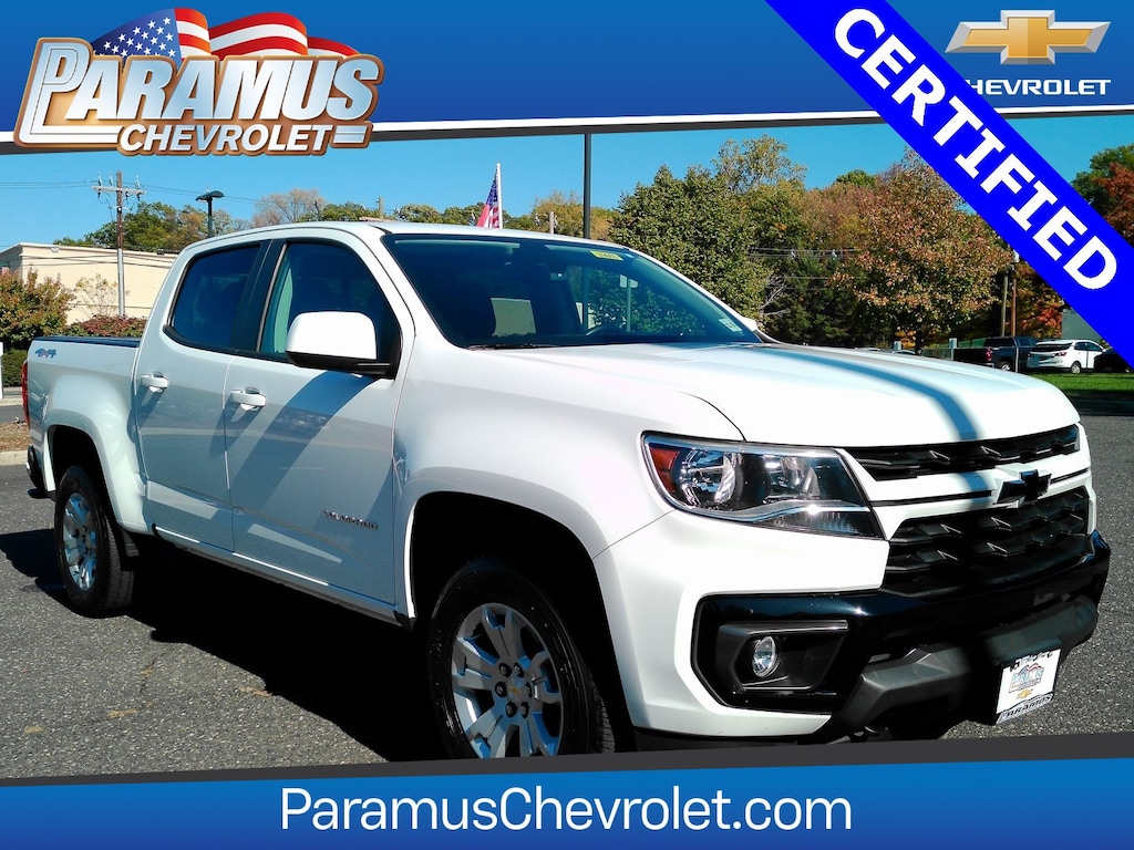 Certified. Summit White 2021 Chevrolet Colorado LT 4WD 8-Speed Automatic V6 * * BUY FROM A TRUSTED FAMILY OWNED DEALERSHIP, SATISFYING CUSTOMERS SINCE 1957! * *, 4WD, Back Up Camera, Bluetooth, Hands Free, CERTIFIED, Clean CARFAX, Clean Vehicle History Report, 4WD, Enhanced Driver Instrument Information Display, Forward Collision Alert, Front Fog Lamps, Lane Departure Warning System, LT Convenience Package, Manual Rear-Sliding Window, Preferred Equipment Group 4LT, Rear Vision Camera, Rear-Window Electric Defogger, Remote Vehicle Starter System, Safety Package, UltraSonic Rear Park Assist.