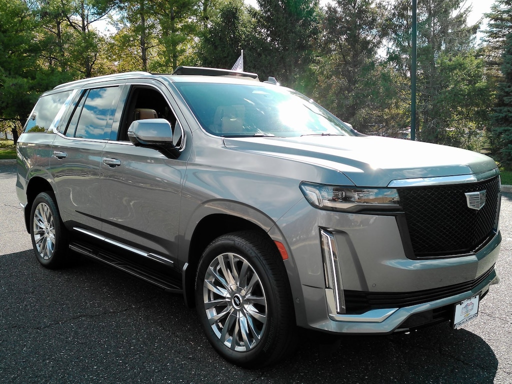 Satin Steel Metallic 2022 Cadillac Escalade Premium Luxury 4WD 10-Speed Automatic 6.2L V8 * * BUY FROM A TRUSTED FAMILY OWNED DEALERSHIP, SATISFYING CUSTOMERS SINCE 1957! * *, 4WD, Back Up Camera, Bluetooth, Hands Free, 4WD, Brandy With Very Dark Atmosphere Accents Leather, 8-Way Power Driver Seat Adjuster, Adaptive Cruise Control, AKG Studio 19-Speaker Audio System, Automatic Seat Belt Tightening, Automatic Stop/Start, Door Lock & Latch Shields, Enhanced Automatic Emergency Braking, Enhanced Automatic Parking Assist, Glass Breakage Sensor, Heads-Up Display, Lane Change Alert w/Side Blind Zone Alert, Mechanical Limited-Slip Differential, Navigation System, Power Panoramic Tilt-Sliding Sunroof, Power steering, Power windows, Preferred Equipment Group 1SB, Rear Camera Mirror, Rear Camera Mirror Washer, Rear Cross Traffic Alert, Reconfigurable Full-Color Head-Up Display, Reverse Automatic Braking, Running Board Assist Steps, Start/Stop System Disable Button, Steering wheel memory, Steering wheel mounted audio controls, Theft-Deterrent Alarm System, Vehicle Inclination Sensor, Vehicle Interior Movement Sensor.