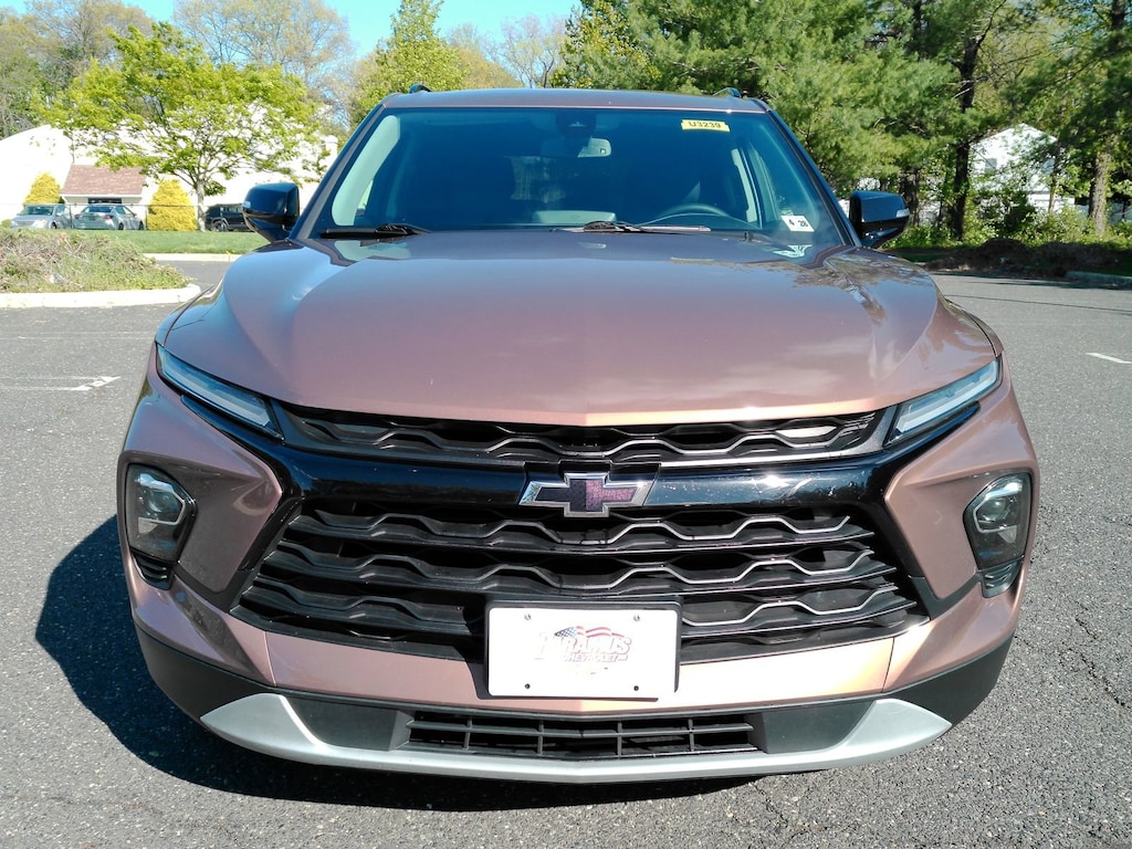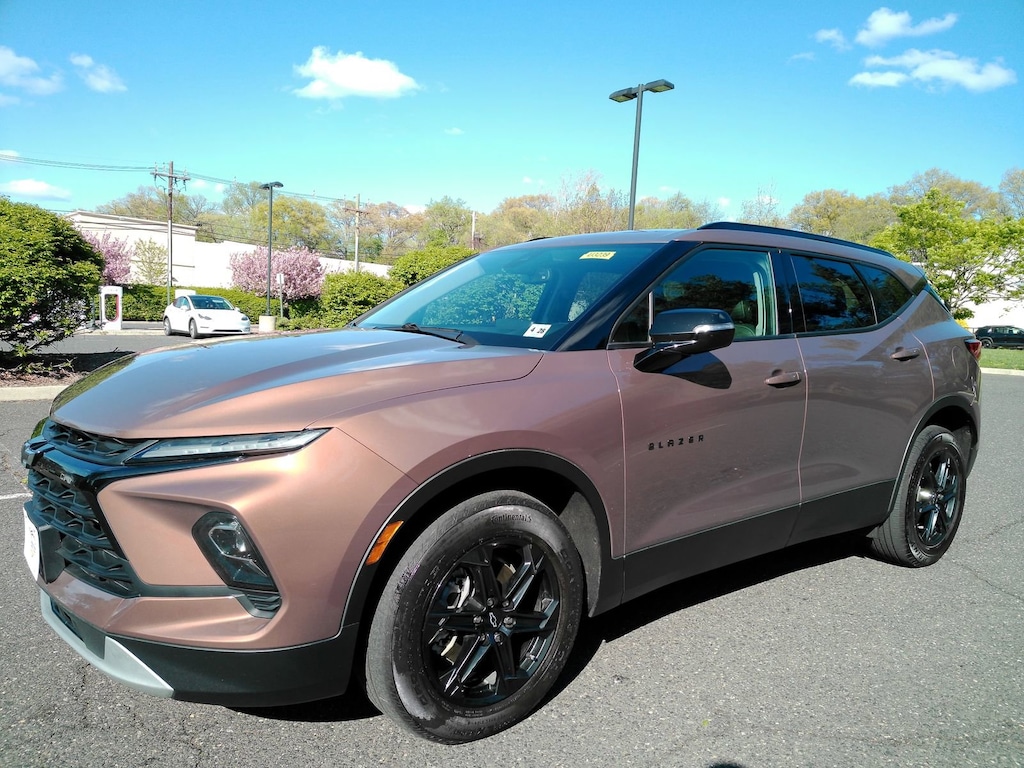 AWD, CARFAX One Owner, Local Trade!, AWD, 6-Way Power Front Passenger Seat Adjuster, Black Roof-Mounted Side Rails, Driver Confidence Package, Front & Rear Black Bowties, Heated Driver & Front Passenger Seats, Inside Rear-View Auto-Dimming Mirror, Lane Change Alert w/Side Blind Zone Alert, Midnight/Sport Edition, Outside Heated Power-Adjustable Body-Color Mirrors, Preferred Equipment Group 3LT, Rear Cross Traffic Alert, Rear Park Assist w/Audible Warning, Rear Power Programmable Liftgate, Universal Home Remote, Wheels: 18 High Gloss Black Painted Aluminum. New Price! Recent Arrival! CARFAX One-Owner.2023 Chevrolet Blazer Copper Bronze Metallic LT AWD 9-Speed Automatic with Overdrive 3.6L V6 SIDI