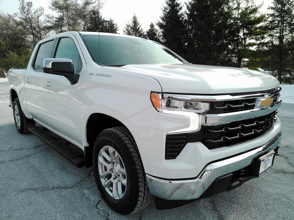 Summit White 2023 Chevrolet Silverado 1500 LT 4WD 8-Speed Automatic 2.7L Turbo CARFAX One Owner, 8-Speed Automatic, 4WD, Black Cloth, 10-Way Power Driver Seat w/Lumbar, 120-Volt Bed Mounted Power Outlet, 120-Volt Instrument Panel Power Outlet, Convenience Package, Dual Rear USB Ports (Charge Only), Dual-Zone Automatic Climate Control, Heated Driver & Front Outboard Passenger Seats, Heated Steering Wheel, Hitch Guidance, Keyless Open & Start, Trailering Package, Wrapped Steering Wheel.